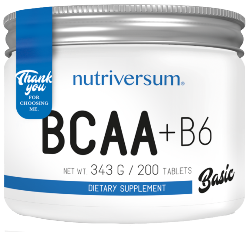 Nutriversum BCAA+B6 - аминокислоты БЦАА в капсулах с добавлением витаминов группы Б. Эта добавка разработана фармацевтами фирмы Nutriversum для защиты восстановления мышц и поддержания анаболических процессов, она способствует набору чистой мышечной массы, а так же повышает энергетические резервы организма. Помимо аминокислот продукт содержит витамины группы Б, это позволяет улучшить работу сердца, а так же поддерживает сосудистую систему в хорошем состоянии. Благодаря тому, что аминокислоты BCAA положительно воздействуют на защитные функции организма, из него быстрее выводятся продукты жизнедеятельности клеток и нормализуется метаболизм жиров.