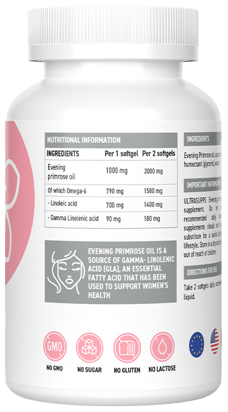 Биодобавка на основе масла примулы вечерней - отличный источник Омега-6 полиненасыщенных жирных кислот, включая линолевую и гамма-линоленовую (ГЛК). ГЛК помогает облегчить симптомы ПМС и менопаузы, а также способствует нормализации женского гормонального фона, поддерживая общее здоровье и благополучие.