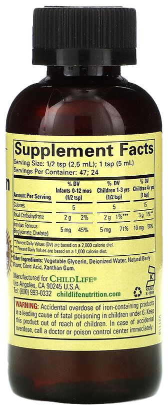 ChildLife Liquid Iron - это жидкая добавка железа, специально созданная для детей, чтобы обеспечить их организм необходимым количеством железа для оптимального роста и развития.