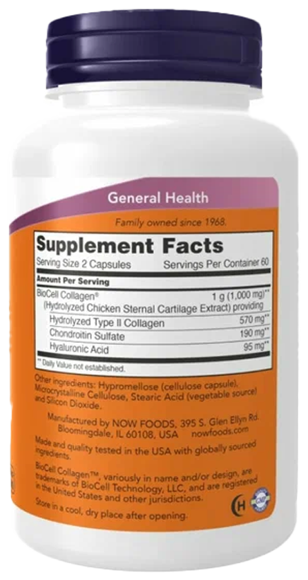 Этот предварительно переваренный комплекс из куриного грудинного хряща содержит натуральный гидролизованный коллаген и другие природные элементы здоровых соединительных тканей, в том числе хондроитин и гиалуроновую кислоту.