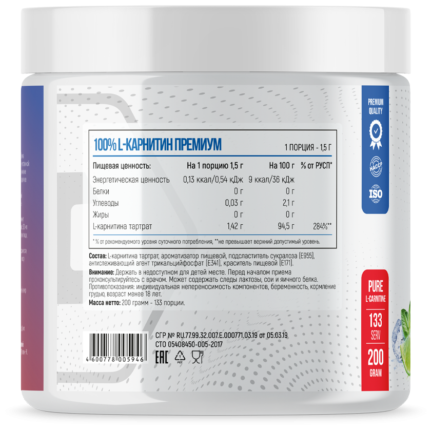 Для производства Premium L-Carnitine использовалось лучшее сырье и многоуровневая система обработки. Вы получаете свыше 85% очищенного Левократинина в каждой порции, который быстро абсорбируется и начинает действовать уже спустя полчаса после применения. К другим достоинствам добавки можно отнести ее приятный вкус, хорошую размешиваемость.