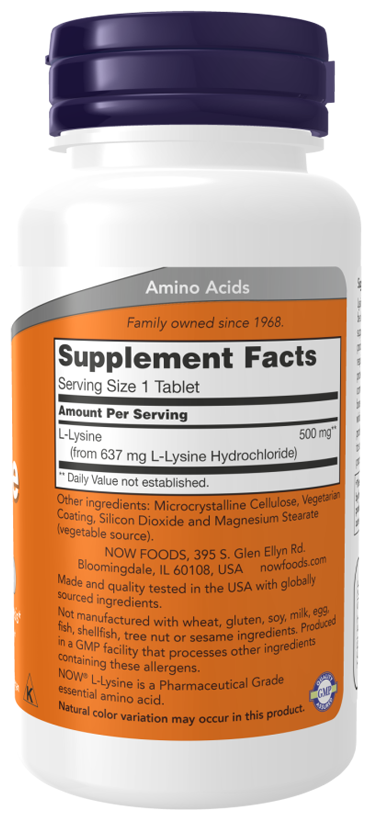 NOW L-Lysine 500 mg, 100 таблеток