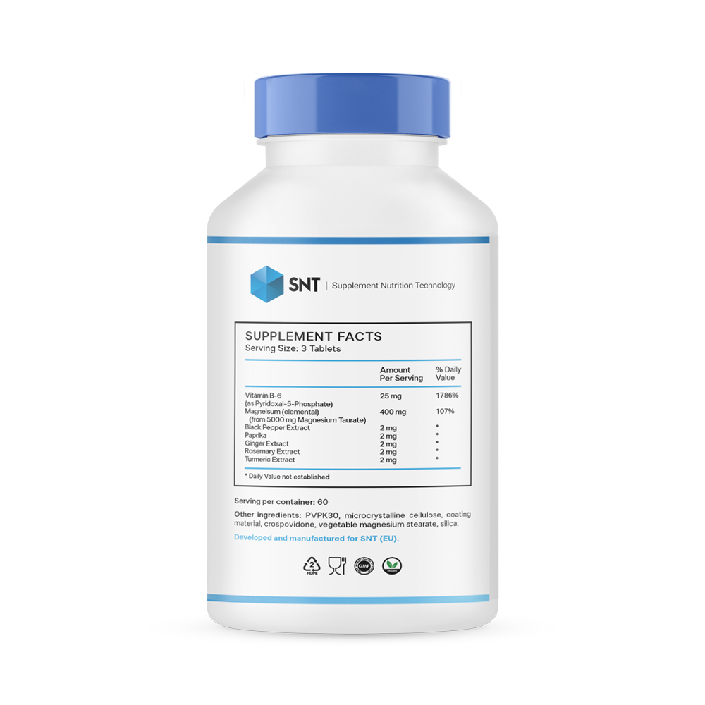 Таурат магния - хелатная форма магния и аминокислоты таурина. Вместе они являются отличными помощниками в снижении кровяного давления и оказывают пользу для сердца.Magnesium Taurate разработан с соблюдением всех стандартов качества. Добавка состоит не только из этих двух полезных компонентов,но и включает в себя другие важные витамины и микроэлементы, такие, как: витамин В-6, экстракт черного перца, паприка, корень имбиря, экстракт розмарина и куркумин, которые в комплексе положительно влияют на весь организм. Магний таурат обеспечивает защитные функции мозгу, сердцу, глазам и даже мышцам. Этот комплекс помогает предотвратить аритмию и образование тромбов.