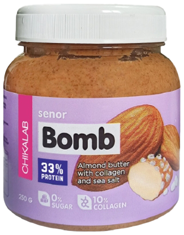 Миндальная паста с морской солью Senor Bomb производителя спортивного питания Чикалаб. Натуральный состав без ГМО и консервантов. Многоступенчатая система контроля качества компонентов. Прошли щадящую обработку, сохранившую витамины и минералы.