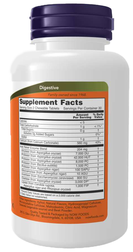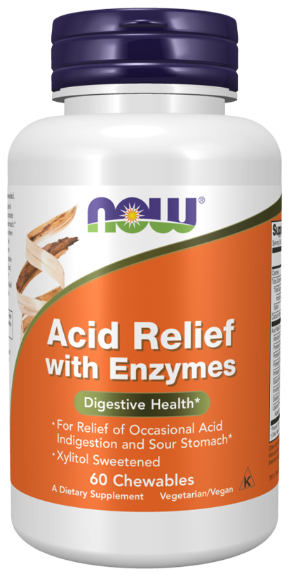 Средство Acid Relief от Now с ферментами обеспечивает быстрое избавление от периодического несварения желудка, а также улучшает пищеварительные ферменты в восхитительной жевательной таблетке.
