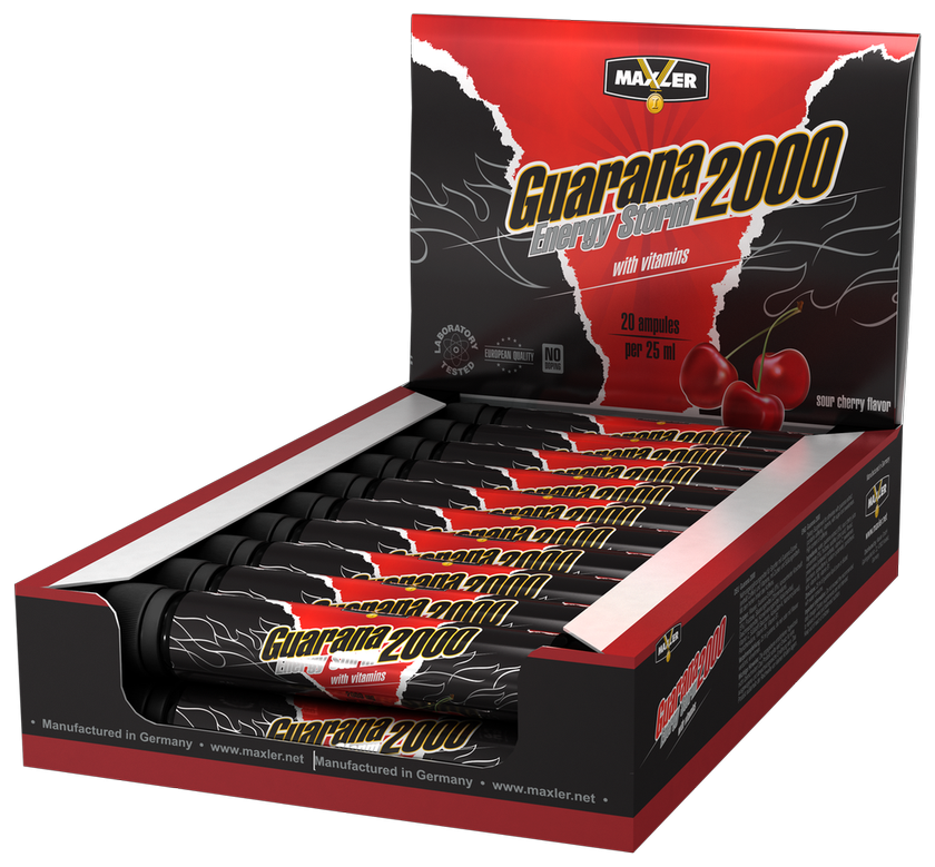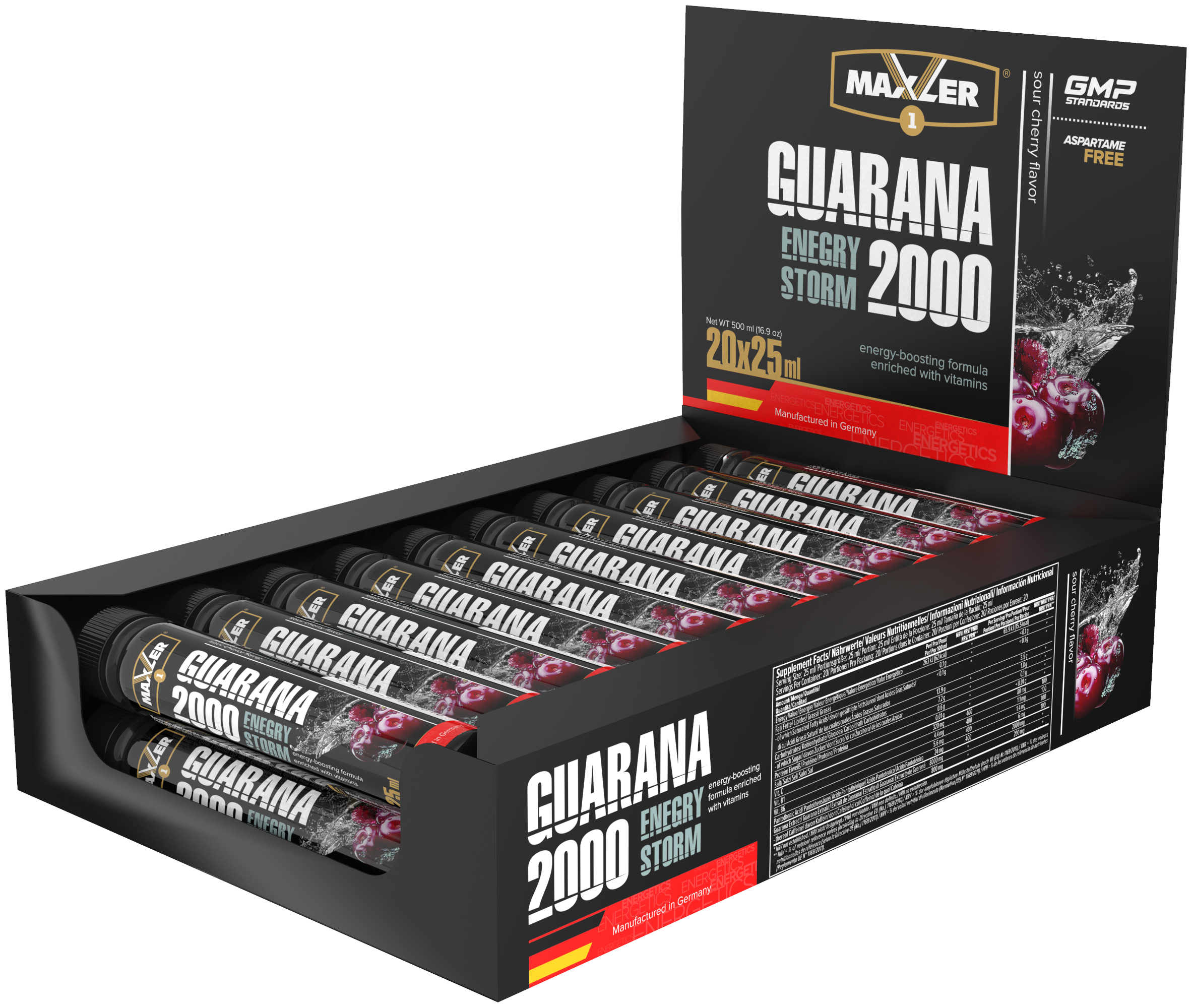 Guarana Energy Storm - это энергетический напиток на основе экстракта гуараны в ампулированной форме. Каждая ампула Guarana Energy Storm содержит 2000мг экстракта гуараны, витамин С, витамин В1, витамин В6 и пантотеновую кислоту. Активное вещество кофеин, содержащееся в экстракте гуараны в связанной форме, медленно усваиваясь, приводит к пролонгированному действию продукта, без резких пиков, что не только исключает нежелательные проявления кофеина, но и повышает эффективность его действия.