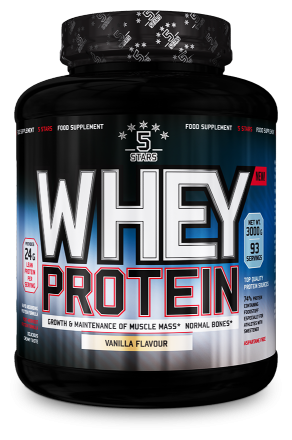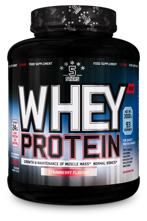 Whey Protein от 5stars является отличным источником белка, который сделан из высококачественной молочной сыворотки, является неотъемлемой частью строительного материала для наращивания мышечной массы, в первую очередь за счет высокого содержания аминокислот BCAA(около 20 %)Обогащен такими аминокислотами как часть аминокислот около 45%.Высокое содержание аминокислот BCAA и самая высокая биологическая ценность делает Whey Protein идеальным для наращивания мышечной массы без накопления жира, а также способствует его снижению, подходит для людей занимающихся активными видами спорта.