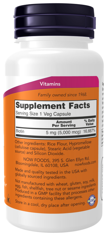 NOW Biotin, Биотин, 60 капсул