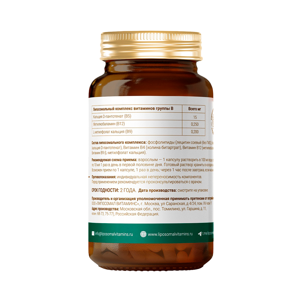 | натуральный соевый лецитин (не ГМО), кальция D-пантотенат (B5), холина битартрат (B4), метилкобаламин (B12), L-метилфолат кальция (B9). | ||